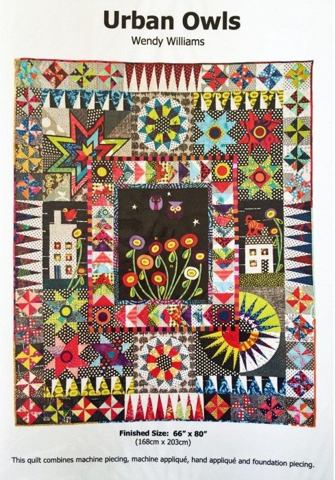 The Urban Owls pattern offers quilters of all skill levels the opportunity to sharpen quilting skills. The pattern combines machine piecing, machine applique, hand applique and foundation piecing along with other techniques to create this unique quilt. At the end of five classes, students will have a quilt top that is sure to impress family and friends! The finished quilt measures 66" x 80", making it the perfect size for a lap quilt or wall hanging.
